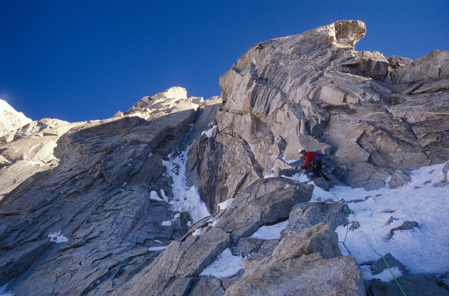 Starting up such an enormous wall carrying less than 25 pounds could be the definition of hubris but that would be inaccurate. Instead, the pair’s confidence was born of years of experience, of exploration, testing and preparation. That they succeeded, making the round-trip up and down the very difficult route (M5 X, 5.9, WI4) in eight days, validated those years of practice and self-belief. Steve envisioned and executed what others could not.